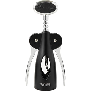 Strong, double-lever action takes the muscle out of cork pulling for a quick & easy uncorking experience. Rubber-cushioned handles provide a soft, nonslip grip. Sturdy, stainless steel construction for long-term durability. A sleek black finish adds a touch of elegance to your most reliable wine accessory.